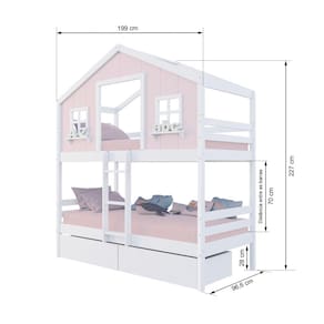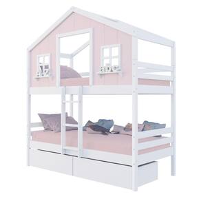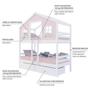 Diferenciais: Escada Fixa, Casinha com fechamento em MDF, Janela e Prateleira Decorativa, 02 Gavetas com Rodízios.