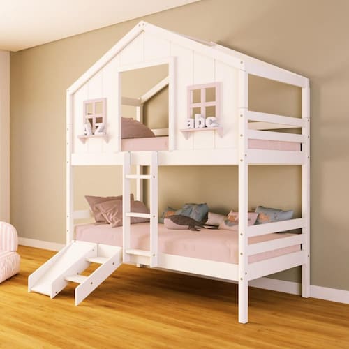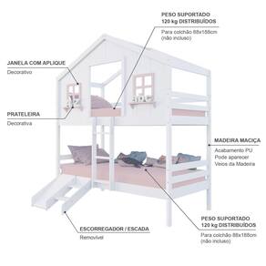 Diferenciais: Escada Fixa, Casinha com fechamento em MDF, Janela e Prateleira Decorativa, Kit Escada/ Escorregador.