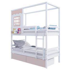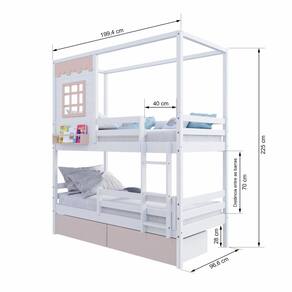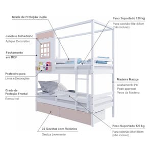 Diferenciais: Escada Fixa, 02 Gavetas, Grade de Proteção Removível, Casinha com fechamento em MDF, Janela e Prateleira para Livros e Decoração, Montagem Reversível (Lado Direito ou Lado Esquerdo)