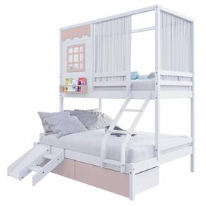 Material Principal: Madeira Maciça | Cor: Branco/ Rosa | Necessita Montagem: Sim | Acompanha Colchão: Não | Tipo de Cama: Beliche Casal/ Solteiro