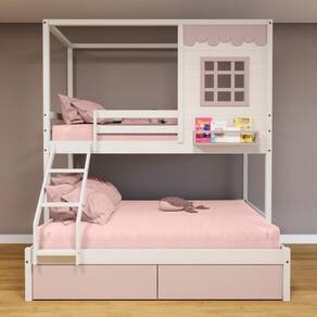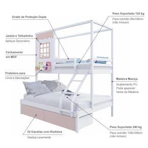 Material Principal: Madeira Maciça | Cor: Branco/ Rosa | Necessita Montagem: Sim | Acompanha Colchão: Não | Tipo de Cama: Beliche Casal/ Solteiro