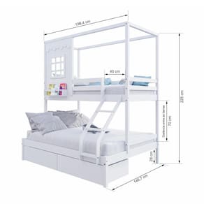 Material Principal: Madeira Maciça | Cor: Branco | Necessita Montagem: Sim | Acompanha Colchão: Não | Tipo de Cama: Beliche