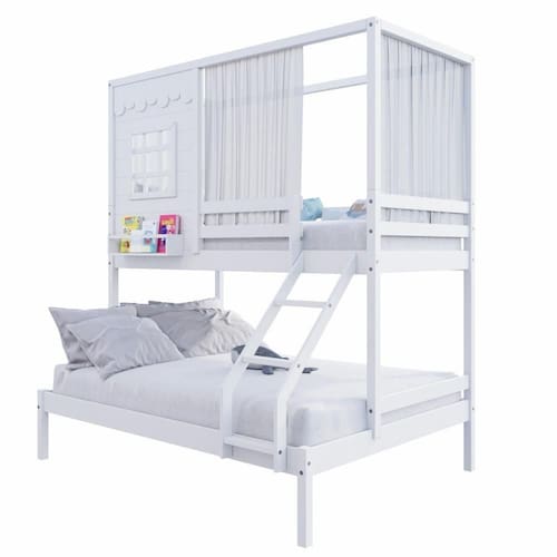 Diferenciais: Escada com Leve Curvatura, Cortina, Casinha com fechamento em MDF, Janela e Prateleira para Livros e Decoração, Montagem Reversível (Lado Direito ou Lado Esquerdo)