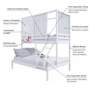 Material Principal: Madeira Maciça | Cor: Branco | Necessita Montagem: Sim | Acompanha Colchão: Não | Tipo de Cama: Beliche