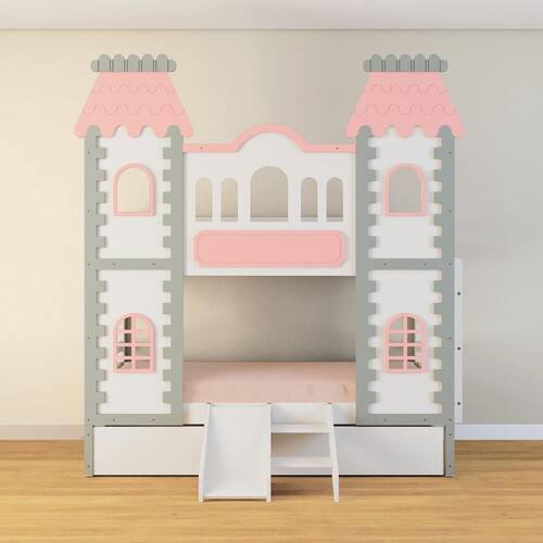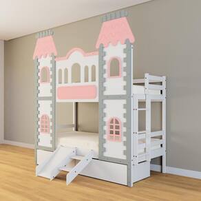 Diferenciais: Castelo com fechamento em MDF, 02 Gavetas, Kit Escada/Escorregador, Montagem Reversível da Escada ( lado direto / Lado esquerdo)
