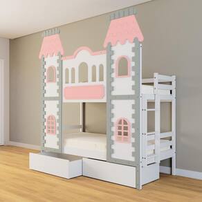 Diferenciais: Castelo com fechamento em MDF, 02 Gavetas, Montagem Reversível da Escada ( lado direto / Lado esquerdo)