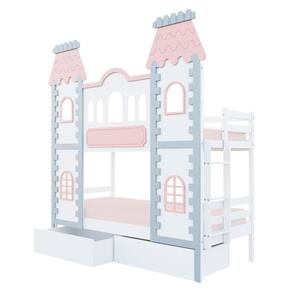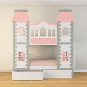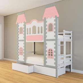 Material Principal: Madeira | Cor: Branco/Cinza/Rosa | Necessita Montagem: Sim | Acompanha Colchão: Não | Tipo de Cama: Beliche Solteiro Castelo