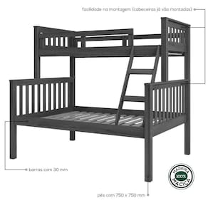 Medida indicada para colchão cama superior (L x P): 88 cm x 188 cm