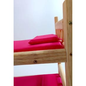 Especificações técnicas: - Material: Pinus - Medidas: 60 cm comprimento x 50 cm altura x 31 cm largura - Acompanha 02 colchões com travesseiros nas cores pink - Kit de ferragens com parafusos e manual de montagem incluso - Produto pré-montado