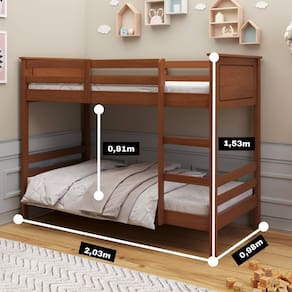 Dimensões do beliche de solteiro montado: Comprimento (cm): 198 Altura (cm): 153 Largura (cm): 98