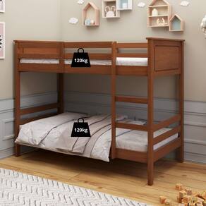 Detalhes do produto: Modelo: BL141 Material: Madeira Maciça de Pinus de Reflorestamento e MDF de 2,2cm de espessura Pintura/Acabamento: Pu Branco /Castanho e UV 30% brilho (deixando aparente os veios da madeira) Para Colchões de Dimensões (cm x cm): 188x88 Colchão: Não incluso Peso Suportado : 120 Kg por cama Acessórios: Escada Fixa Altura entre camas: 81cm