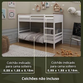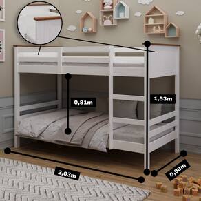 Dimensões do beliche de solteiro montado: Comprimento (cm): 198 Altura (cm): 153 Largura (cm): 98