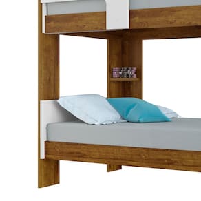 Características do produto: Estrutura do produto: MDF 25 mm -pés e barras- Cantoneira para apoio de celular Proteção lateral na cama superior Escada projetada na frente para facilitar o acesso à cama superior Acabamento acetinado Não acompanha cama auxiliar -vendida separadamente- Suporte máximo por cama: 80 kg