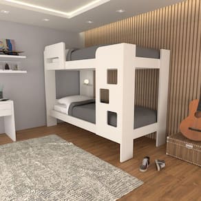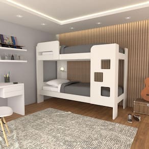 O(a) Beliche Escadinha 1 Prateleira 100% Mdf Grade de Proteção Branco - Loja é produzido em 100% MDF na escala de brilho Semi-Brilho, e possui um grau de dificuldade de montagem: Médio.