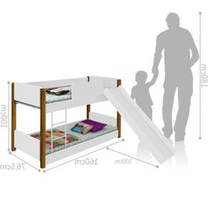 CLASSIFICAÇAO DA CAMA: Infantil | TIPO DE CAMA: Solteiro | GARANTIA DO FABRICANTE: 3 | COMPRIMENTO PRODUTO COM EMBALAGEM (CM): 152 | CONTEÚDO DA EMBALAGEM: 1 Beliche | CORES DO PRODUTO (FILTRO DE CORES): Branco | COR PREDOMINANTE: Branco | DESCRIÇÃO DO TAMANHO: Altura: 100 Cm Largura: 76,5 Cm Comprimento: 160 Cm | ESTADO DE ORIGEM: SP | ALTURA DO PRODUTO (CM): 100 | LARGURA DO PRODUTO (CM): 76 | LARGURA PRODUTO COM EMBALAGEM (CM): 70 | MARCA: CASAH | MATERIAL PARA FILTRO: MDF | MATERIAL PRINCIPAL: MDF | MODELO: Beliche Infantil Branco e Mel com Escorregador e Colchões | PESO DO PRODUTO (KG): 40,9 | PESO PRODUTO COM EMBALAGEM (KG): 41,7 | PRODUTO PRECISA DE MONTAGEM?: Sim, a montagem é simples mas sugerimos a contratação do nosso de montagem (para os CEPs em que o está disponível) ou de algum experiente de sua preferência | INSTRUÇÕES/CUIDADOS: Limpar com pano macio e seco, não utilizar produtos abrasivos. | ALTURA DO PRODUTO COM EMBALAGEM (CM): 83 | COMPRIMENTO DO PRODUTO (CM): 160