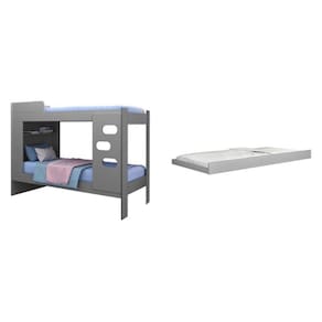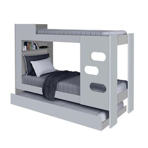 Estruturada 100% em MDF, a beliche Floripa é ideal para quem procura um design clean e elegante. Reforçada com estrado de eucaliptus e pinus, com escada de três degraus e regulavel, garantem resistência e segurança. Acomoda colchão de 0,88m x 1,88. A Cama Auxiliar Eleganza é perfeita para quem precisa otimizar ao máximo o espaço do quarto. Produzida 100% em MDF e pintura UV, garantindo qualidade e resistência ao produto. Possui 4 Rodízios que facilitam o uso e a locomoção. Pode ser utilizada em todas as camas Solteiro da marca J&A Móveis. Qualidade e funcionalidade reunidas em um só produto. Acomoda colchão de 0,88m x 1,88m x 0,14m Acompanha Colchão: Não Altura do Conjunto: 150 cm Ambiente: null Ambiente Principal: Quarto Cor: Cinza Informação Complementar: 1x Beliche Floripa CinzaLargura: 97 cmAltura: 150 cmPeso: 56 kgProfundidade: 193,6 cmNecessita Montagem: Sim1x Cama Auxiliar 90cm Eleganza CinzaLargura: 90 cmAltura: 26 cmPeso: 10.93Profundidade: 188Necessita Montagem: Sim Possui Portas: Não