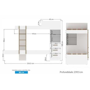 Dimensões(Cm): Comprimento(Profundidade): 239,50cm x Largura: 92,50cm x Altura: 169,00cm