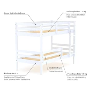 Beliche Infantil Eco com Grade de Proteção Madeira Maciça Branco Mobilistore