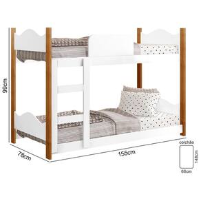 Possui um sistema antirruídos que garante um ambiente tranquilo e silencioso, escada de MDF que facilita o acesso à cama superior e grade de proteção lateral.