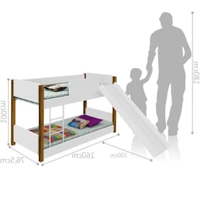 LARGURA PRODUTO COM EMBALAGEM (CM): 70 | COMPRIMENTO PRODUTO COM EMBALAGEM (CM): 152 | PESO PRODUTO COM EMBALAGEM (KG): 41,7 | MODELO: Beliche Infantil Branco e Mel com Escorregador e Colchões | CORES DO PRODUTO (FILTRO DE CORES): Branco | DESCRIÇÃO DO TAMANHO: Altura: 100 Cm Largura: 76,5 Cm Comprimento: 160 Cm | MATERIAL PRINCIPAL: MDF | MATERIAL PARA FILTRO: MDF | INSTRUÇÕES/CUIDADOS: Limpar com pano macio e seco, não utilizar produtos abrasivos. | ALTURA DO PRODUTO COM EMBALAGEM (CM): 83 | CONTEÚDO DA EMBALAGEM: 1 Beliche | COR PREDOMINANTE: Branco | COMPRIMENTO DO PRODUTO (CM): 160 | PESO DO PRODUTO (KG): 40,9 | ESTADO DE ORIGEM: SP | LARGURA DO PRODUTO (CM): 76 | PRODUTO PRECISA DE MONTAGEM?: Sim, a montagem é simples mas sugerimos a contratação do nosso de montagem (para os CEPs em que o está disponível) ou de algum experiente de sua preferência | ALTURA DO PRODUTO (CM): 100
