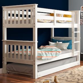 Beliche Cama Auxiliar 730X715B alinhando conforto e funcionalidade em um móvel clássico! Com estrutura 100% em Madeira Maciça de Pinus (sendo os lastros em Madeira de Eucalipto 2,3 cm) e acabamento UV Fosco. Composta por camas reforçadas e cama auxiliar, escada fixa (não removível pós instalação) e pés com espessura de 6,3 cm. O espaçamento entre as camas é de 67 cm, suportando até 80kg na superior, 100kg na inferior e 100kg na cama auxiliar, ambas ideais e indicadas para colchões de 188x88 cm. NÃO ACOMPANHA COLCHÃO NEM DEMAIS DECORAÇÕES. Produto será entregue em 4 volumes.