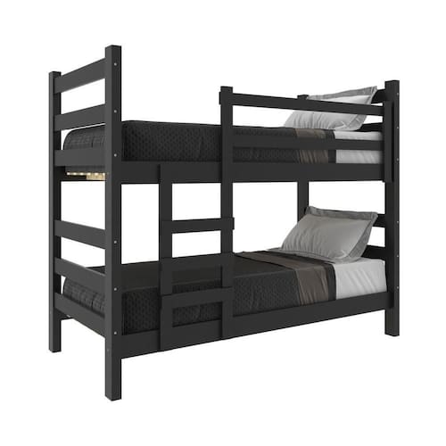 Beliche Madeira Maciça - vira 2 Camas - com Colchões Inclusos Dubai Multimóveis VCR4158 - Preto