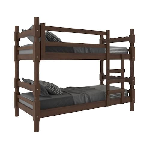 Beliche Madeira Maciça - vira 2 Camas - com Colchões Inclusos Porto Multimóveis VCR4159 - Marrom
