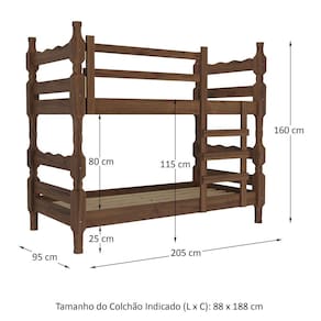 O Beliche Madeira Maciça - vira 2 Camas - com Colchões Inclusos Porto Multimóveis é um produto que une qualidade e versatilidade para atender às suas necessidades. Produzido 100% em madeira maciça (pinus) proveniente de reflorestamento, este beliche garante durabilidade e resistência, além de ser uma opção ecologicamente correta. Com barras reforçadas e suportando até 110kg, esse beliche oferece segurança e conforto para suas noites de sono. Ainda mais versátil, você pode utilizá-lo também como duas camas separadas. Possui dupla furação podendo ser utilizado para colchão de 78 ou 88cm. E não se preocupe: os colchões D23 com tratamento anti-ácaro e anti-alérgicoestão inclusos, garantindo proteção à saúde durante seu descanso. As cabeceiras torneadas com espessura de 8,5 x 8,5cm trazem um toque sofisticado ao design do móvel. Invista em qualidade e praticidade para sua casa ou apartamento sem abrir mão do estilo que só essa peça proporciona.