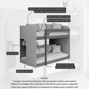 Colchão indicado para a cama inferior 188x88 cm com altura máxima de 16 cm