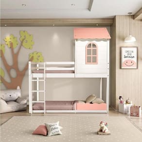 A cama superior é cercada por toda as laterais com barras e a cama inferior com grade de proteção, garantindo noites mais seguras. A escada com 3 degraus na parte frontal. O painel com janelinha e o telhado casinha, deixam a cama mais divertida e lúdica. A cama da parte debaixo é no método montessoriano, onde a independência da criança é livre, podendo sozinha, subir e descer da cama. Um móvel incrível para fazer do quarto o local mais divertido da casa. Esse móvel poderá acompanhar as diferentes fases da criança, iniciando na infância e passando pela juvenil. Acompanha Colchão: Não Altura do Conjunto: 224 cm Ambiente: null Ambiente Principal: Quarto Infantil Cor: Branco/Rosa Informação Complementar: 1x Cama Alta Infantil Club House Sweet Branco/RosaLargura: 202Altura: 224Peso: 51.5Profundidade: 111Necessita Montagem: Sim1x Kit Estrado com Grade para Cama Club House Sweet Branco/RosaLargura: 89Altura: 1.7Peso: 5.5Profundidade: 190Necessita Montagem: Sim Material Principal: Madeira Maciça Permite a Utilização de Cama Auxiliar: Não Possui Portas: Não