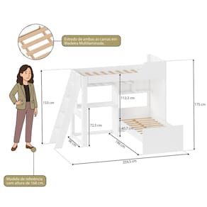 Informações Complementares: - Fazer uma verificação mensal e realizar o reaperto dos parafusos do produto, caso necessário. - Proibido pular sobre as camas. - O produto destina-se ao uso de uma pessoa por cama sempre. O produto jamais deverá ser utilizado por mais de uma pessoa por cama