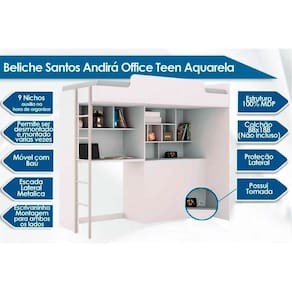 Material de Estrutura - Estrutura 100% MDP Estilo do Móvel - Moderno Tipo de Pintura - Ultravioleta Tipo de Acabamento da Pintura - Semi Brilho Diferenciais dos Móveis de Quarto - Móvel c/ Baú - Possui Tomada - Escrivaninha Embutida Tipo de Cama - Beliche Material do Estrado - c/ Estrado Reforçado Tamanho da Cama - Solteiro Diferenciais das Camas - Escada Lateral - Proteção Lateral - Escada Metálica Suporte de Peso - 80 kg