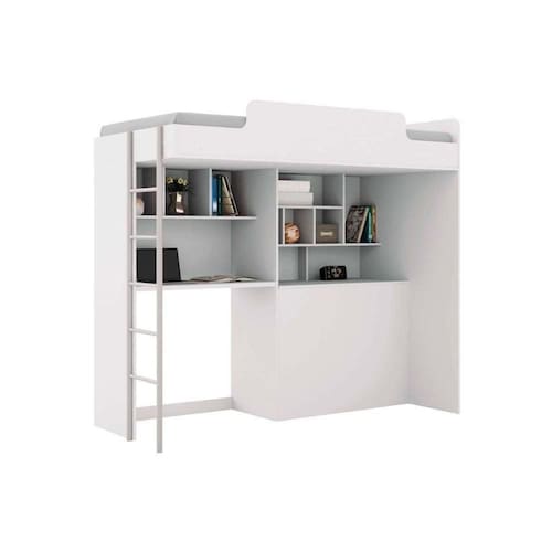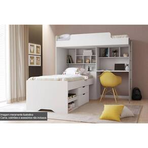 Beliche Office Teen Aquarela (Cama+Bancada+Baú+Nicho+Prateleiras) Branco - Santos Andirá