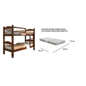 Beliche Palmo – CASTANHO ?Beliches são ótimos aliados para quem quer poupar espaço. A Beliche Palmo é uma ótima pedida para compor o seu dormitório. Além de ser um móvel funcional também reúne design e estilo, combina com diversos tipos de decorações. Confeccionado com madeira pinus, sua estrutura possui mais resistência e oferece mais segurança para as suas noites de sono. Características Gerais - Para Colchão 0.88 x 1.88 - Produto fabricado em 100% Madeira Maciça Pinus. - Espessuras dos pês 0.8 x 0.8 cm - Grade Lateral maciça reforçada; - Possui Estrado Reforçado; - Exclusiva Grade de Proteção na parte lateral - Suporta no Máximo 150kg; - Possui um Fino Acabamento;. - Ripas e sarrafos do estrado em madeira maciça. - Produto versátil encaixa em vários ambientes. - Lindo design. -  Dimensão aproximada: Largura: 96 cm Comprimento: 2,04 m Altura: 154 cm Peso: 32kg Sobre os colchões Leve e prático, o colchão Gazin dream vai te acompanhar para qualquer lugar, seja na praia, camping ou na sala de casa para ver filmes ou maratona sua série favorita. Além dessa praticidade e leveza, ele é extra macio e confortável com sua espuma D20, liso e com tecido stretch fácil de limpar. É o melhor custo-benefício que você vai encontrar em toda a internet! Características do produto Tamanho: Solteiro 88 Tipo de enchimento: Espuma Com pillow: Não Peso máximo suportado: 60 kg cada Marca Prorelax Composição Tipo de enchimento: Espuma Composição do tecido: Strech Dimensões Largura x Comprimento x Altura 88 cm x 188 cm x 12 cm Especificações É infantil: Não Peso máximo suportado 60 kg Firmeza: Média Não Stretch: A elasticidade e a suavidade são os principais pontos altos do revestimento. Ele é fabricado com um fio elástico sintético, que é tecido em conjunto a outros fios (de fibras naturais ou sintéticas). Cuidados: Usar em local seco com passagem de ar. Evite contato com o sol. Não dobrar ou deixar em pé. Gire o colchão quinzenalmente, e vire as faces a cada mês (em colchões double face). Atenção! Confira as dimensões deste produto e certifique-se de que passará normalmente por supostos elevadores, portas, escadas e/ou corredores de sua moradia; As imagens são ilustrativas, eletrodomésticos e demais objetos que compõem o cenário, não fazem parte do anúncio; Sobre a tonalidade das cores, poderá ocorrer alterações conforme a configuração do seu monitor. Orientamos que a montagem e instalações do produto seja realizado por um técnico de sua confiança, após a sua entrega. Não nos responsabilizamos pela instalação/montagem. Fornecemos somente assistências, por defeitos de fábrica.