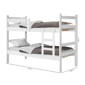 Produto em MDF/MDP – Pintura UV Semi brilho - Utilizar colchoes com a medida 0,88x1,88 (solteiro) – Utilizar pano seco para limpeza – Peso suportado 100 kg cama de cima e 100kg para cama debaixo. Produto pode ser convertido em 2 camas de solteiro. Acompanha Cama Auxiliar: Não Acompanha Colchão: Não Altura do Estrado até o Chão: 30 Altura dos Pés: 74 Ambiente Principal: Quarto Complexidade da Montagem: Média: pode ser montado por mais de uma pessoa e/ou necessite de maior conhecimento para montagem Cor: Branco Cor do Produto: Branco Escala de Brilho: Semi-Brilho Extensível: Não Itens Inclusos: 1 Beliche, kit ferragens e manual de montagem Manual de Montagem e Instalação: https://product-hub-prd.madeiramadeira.com.br/852691/documents/fa6e39c5-4fc1-4d53-892c-e09bdc6fdad51369468manualbelicheporto.pdf Material do Estrado: Pinus Material dos Pés: MDF Material Principal: MDF/MDP Montagem Flex: Sim, pode se transformar em 2 camas de solteiro Necessita Montagem: Sim Origem do Produto: Nacional Permite a Utilização de Cama Auxiliar: Sim Peso: 38.4 Possui Baú: Não Possui Gavetas: Não Possui Pés: 04 Possui Portas: Não Possui Prateleiras: Não Possui Rodízio: Não Recomendações de Uso, Manutenção e Limpeza: Não expor ao sol, não molhar, utilizar pano seco para limpeza. Sapatas Niveladoras: Sim Sistema de Montagem: Parafusos Tamanho do Colchão Indicado (L x C): 88 x 180 Tipo de Cama: Convencional Tipo de Colchão: Solteiro Tipo de Estrado: Fixo Tipo de Madeira Maciça dos Pés: Pinus Ean: 7909903332092