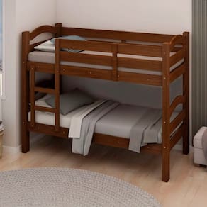 Produto em Madeira de Pinus Macico e MDF Estrutura do Pe em Madeira -100 x 55mm- Pintura com impressao UV e Verniz Bordas em Esmalte PU e Fita de Borda Papel Soft Barra em MDF de 22 mm 5 Travessa no Estrado com Madeira Clean Reforcad Suporta ate 120kg com um colchao D-33 -cada cama- Colchao 0,88 x 1,88