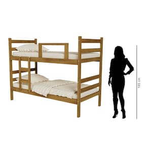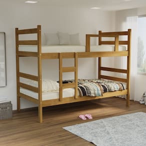 Produto desenvolvido para quartos com pouco espaço, casas e apartamentos, sem perder o estilo. Esta Beliche é produzida em 100% madeira maciça de eucalipto e conta com acabamento em Cera Mel, além de ser super resistente e alta durabilidade. Ecologicamente correta, toda madeira utilizada na fabricação desse produto é de reflorestamento. Acompanha Cama Auxiliar: Não Acompanha Colchão: Não Altura do Estrado até o Chão: 37 cm Ambiente Principal: Quarto Complexidade da Montagem: Média: pode ser montado por mais de uma pessoa e/ou necessite de maior conhecimento para montagem Comprimento: 197,5 cm Cor: Cera Mel Cor do Produto: Cera Mel Escala de Brilho: Fosco Extensível: Não Itens Inclusos: Beliche e manual de montagem Linha ou Coleção: Rústico Manual de Montagem e Instalação: https://product-hub-prd.madeiramadeira.com.br/909594/documents/f52fd754-3942-4783-bde2-6b123fa8f50a1973062528417163148681169.pdf Material da Escada: Madeira Maciça Material do Estrado: Madeira Maciça Material Principal: Madeira Maciça Necessita Montagem: Sim Origem do Produto: Nacional Permite a Utilização de Cama Auxiliar: Sim Peso: 47,2 kg Peso Suportado por cada cama: 80 kg Possui Baú: Não Possui Escrivaninha: Não Possui Gavetas: Não Possui Nichos: Não Possui Pés: Não Possui Portas: Não Possui Prateleiras: Não Possui Rodízio: Não Recomendações de Uso, Manutenção e Limpeza: Limpar com pano seco e limpo. Sistema de Montagem: Parafusos, Cavilhas Tamanho da Cama: Solteiro Tamanho do Colchão Indicado (L x C): 88cm x 188cm Tipo de Cama: Beliche Tipo de Colchão: Solteiro Tipo de Estrado: Fixo Tipo de Madeira Maciça: Eucalipto