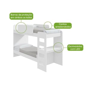 Renove seu espaço com a Beliche Solteiro Olga. Design seguro com cantos arredondados, LED integrado para estilo moderno. Otimização de espaço sem comprometer o conforto. Ideal para quartos compactos e cheios de personalidade.