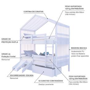 Diferenciais: Escada Fixa, 02 Gavetas, Grade de Proteção, Kit Escada/Escorregador e Casinha Decorativa, Cortina.