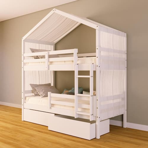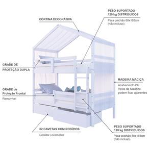 Diferenciais: Escada Fixa, Cortina, Grade de Proteção, 02 Gavetas e Casinha Decorativa.