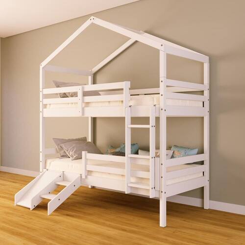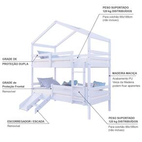 Diferenciais: Escada Fixa, Grade de Proteção, Kit escada/escorregador e Casinha Decorativa.
