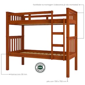 Beliche Solteiro Castanho Claro 100% Madeira Pinus c/ Escada Lateral - Saraiva