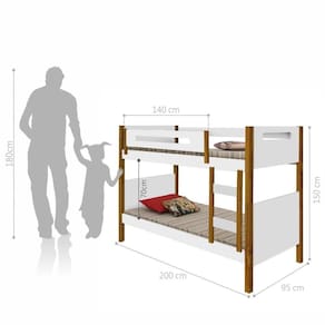 Cama superior com duas grades de proteção, sendo uma interiça em um dos lados, proporcionando mais . O pés são em madeira maciça.