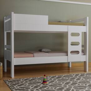 O modelo conta com proteção lateral no andar superior e escada central de fácil acesso, garantindo mais segurança e praticidade para as crianças. Sua estrutura compacta e resistente se adapta a diferentes estilos de ambiente.
