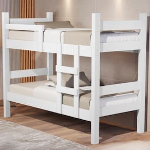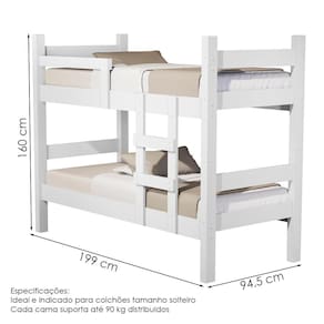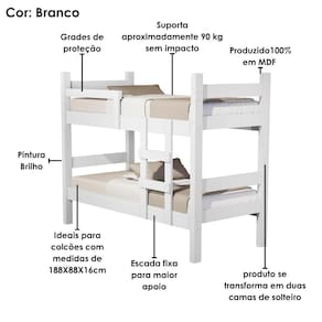 Beliche Leticia, ergonômica e adaptável, criada para oferecer conforto e se ajustar a você! Estrutura 100% MDF de (12/15/25 mm) e acabamento UV. Composta por design moderno com cantos retos, escada fixa para maior apoio, grades de segurança e pés em MDF 25mm para maior estabilidade. Seu destaque fica para sua montagem flex (podendo se transformar em duas camas de solteiro) sendo ideal e indicada para colchões de 188X88 cm (COLCHÃO NÃO INCLUSO), suportando até 90 kg por cama. Este produto será entregue em 2 volumes.