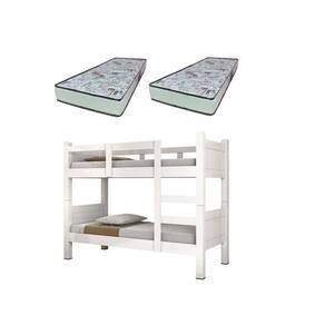 Beliche Solteiro Porto com Proteção Lateral e 2 Colchões D-23 Estrutura 100% Madeira Branco