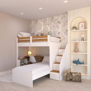Beliche Star Office Infantil/ Juvenil Multifuncional com Escrivaninha Casatema Branco/Amadeirado Freijó. Procurando por um móvel dinâmico e que se adapte em qualquer espaço? A Beliche Star Office é a escolha ideal! Projetada com a tarefa de deixar o quarto dos seus filhos ainda mais funcional e agradável, contém 1 escrivaninha que conta com 5 nichos e 2 prateleiras, grade de proteção e escada lateral com nichos organizadores. Com tantos acessórios assim, fica bem mais fácil organizar o necessário sem abrir mão do conforto. Além disso, a estrutura do móvel permite executar tarefas na parte inferior sem complicações, agregando charme e sofisticação ao cômodo. O que achou? Não perca tempo, garanta já a sua! Informações Complementares: - Fazer uma verificação mensal e realizar o reaperto dos parafusos do produto, caso necessário. - Proibido pular sobre as camas. - O produto destina-se ao uso de uma pessoa por cama sempre. O produto jamais deverá ser utilizado por mais de uma pessoa por cama