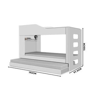 Inclui manual de montagem: Sim | Tamanho da cama: Solteiro | Comprimento: 193 cm | Quantidade de caixas de embalagem: 4 | Altura: 155 cm | Requer montagem: Sim | Largura: 97,5 cm | Marca: Repleta | Tipo de cama: Beliche | Tamanho: Solteiro | Fabricante: Repleta | do modelo: N/A | Principais Características do Produto 1: Estrutura 100% MDF: Material de alta qualidade, garantindo durabilidade e acabamento superior. | Exige montagem: Sim | Principais Características do Produto 2: Cama auxiliar com rodízios: Prática e funcional, facilita o manuseio e proporciona uma terceira opção de cama no mesmo móvel. | Baterias são necessárias?: Não | Dimensões do item C x L x A: (C) 193cm x (P) 97,5 cm x (A) 155 cm | Certificação de teste externa: Sim | de caixas: 4 | Principais Características do Produto 0: (C) 193cm x (P) 97,5 cm x (A) 155 cm | da peça: N/A | Peso do item: 43,00 | Cor: Branco | Palavras-chave de Pesquisa: Beliche | Componentes incluídos: Ripas | Quantidade de itens: 1 | Cor: Branco