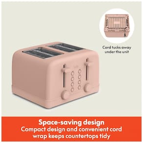 Torradeira elétrica BELLA 4 fatias com 6 níveis de tostagem, funções Reaquecer, Bagel, Descongelar e Cancelar. Possui guias de centragem automática, bandeja coletora de migalhas deslizante e organizador de cabo.Permite ejeção manual