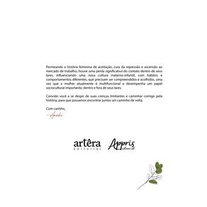 Permeando a história feminina de aceitação, cura da repressão e ascensão ao mercado de trabalho, houve uma perda significativa do contato dentro de seus lares, influenciando uma nova cultura materno-infantil, com hábitos e comportamentos diferentes, que precisam ser compreendidos e acolhidos, uma vez que a mulher atualmente é multifuncional e desempenha um papel sociocultural importante, dentro e fora de seus lares. Convido você a se despir de suas crenças limitantes e caminhar comigo pela história, para que possamos encontrar juntas um caminho de volta. Com carinho, Anahi.